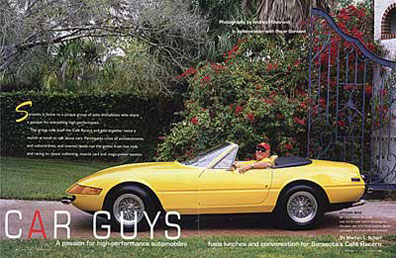 The Car Guys Who Lunch were showcased in a six-page feature in the June 2005 issue of SARASOTA magazine: “CAR GUYS, A passion for high-performance automobiles fuels lunches and conversation for Sarasota’s Café Racers”.
